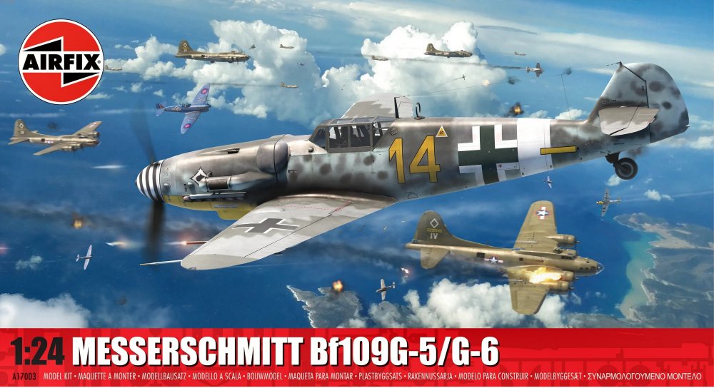 This 1:24 scale model kit includes 405 intricately detailed plastic components, designed for modellers aged 8 and up. With five genuine paint schemes, the Messerschmitt Bf109G-5/6 kit allows you to craft your perfect version of this iconic fighter aircraft.
