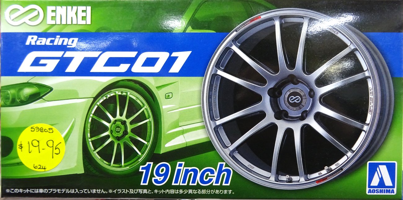 Aoshima 1:24th scale Accessory kitset – Rims & Tyres – Enkei Racing GTC01 19″ – 5380