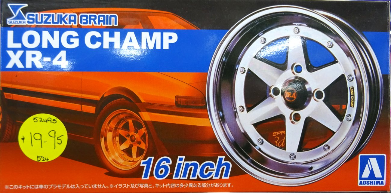 Aoshima 1:24th scale Accessory kitset – Rims & Tyres – Suzuka Brain Long Champ XR-4 16″ – 5249