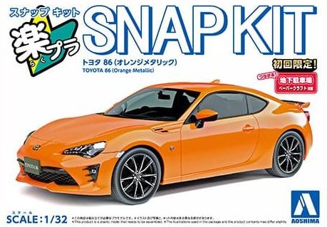 1/32 Snap Toyota 86 (Orange Metallic) by Aoshima delivers fast, enjoyable assembly for car enthusiasts and beginners who want a vibrant display model without extra fuss.