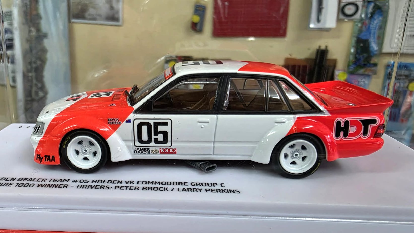Product Description: 1:43 Scale Holden Dealer Team #05 Holden VK Commodore Group C – 1984 James Hardie 1000 Winner – Drivers: Peter Brock / Larry Perkins