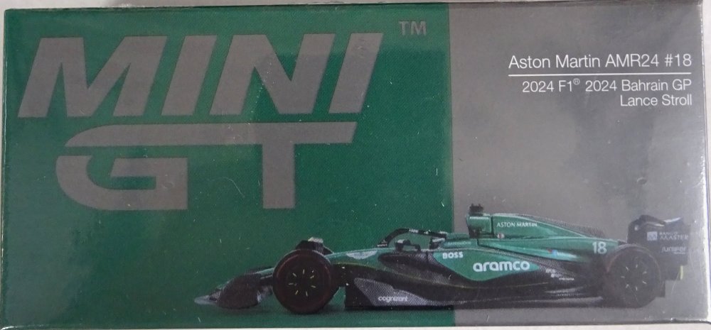 Mini GT 1:64th scale Diecast – Aston Martin AMR24 – #18 Lance Stroll – 2024 F1 2024 Bahrain GP – MGT1001