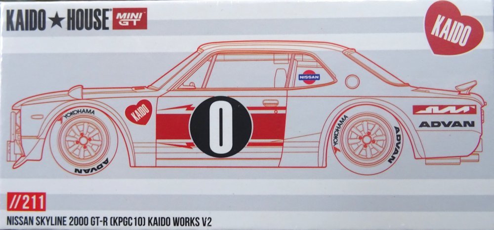 Mini GT 1:64th scale Kaido House Custom – Nissan Skyline 2000GT-R (KPGC10) Kaido Works V2  – HMG211