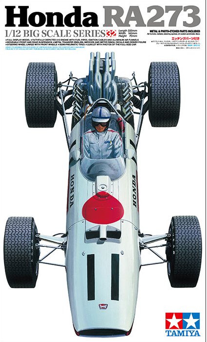 This is a 1/12 scale plastic model assembly kit. Length: 333mm, width: 143mm, height: 70mm ★Meticulously detailed V12 engine features fuel pipes and ignition cables. The 12 exhaust funnels are made from machined aluminum. ★Moving suspension is equipped with metal coil springs. ★Moving the steering wheel actually turns the front wheels. ★Nose cowling can be attached and removed even after assembly to display radiator and water tank. ★Extensive set of photo-etched parts, including brake discs, oil cooler, and steering wheel spokes are included for the ultimate finish. ★Mirror surfaces, and instrument panel rings are depicted with metal transfers. ★Semi-pneumatic tires with accurate tread patterns add to the model’s racing feel. ★1 driver figure included. ★3 types of markings are included. ★Comes with a leaflet of photographs of the car from 1967.