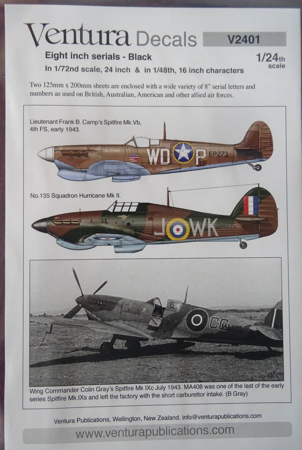 Ventura 1:24th scale Decals – 1/24th scale 8inch RAF serials – V2401